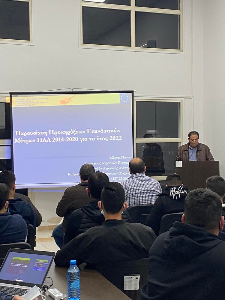 Παρουσίαση για την προκήρυξη Επενδυτικών Μέτρων για τους νέους γεωργοκτηνοτρόφους στην Δρομολαξιά